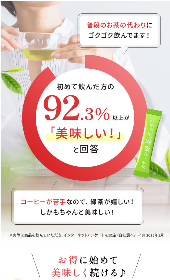 「カテキンの濃さを感じる。継続して飲みたい」