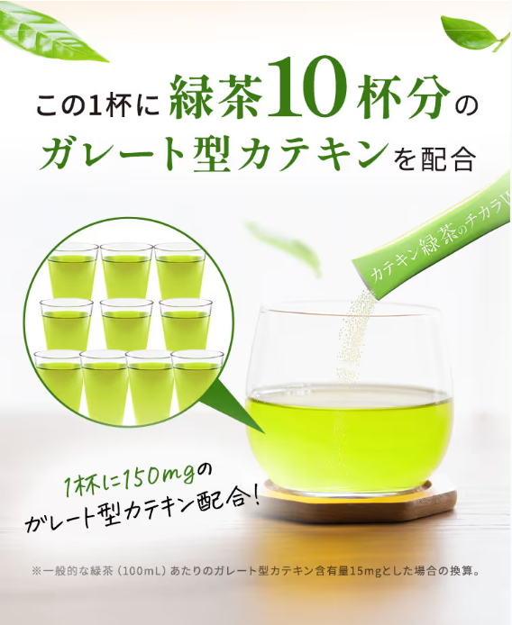 「出典:カテキン緑茶のチカラW公式サイト」1杯に緑茶10杯分のガレート型カテキン配合