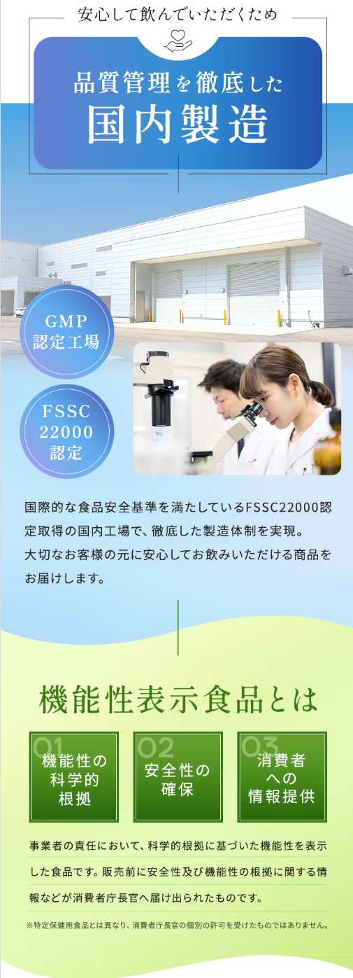 GMP認定工場で製造され、安心の品質